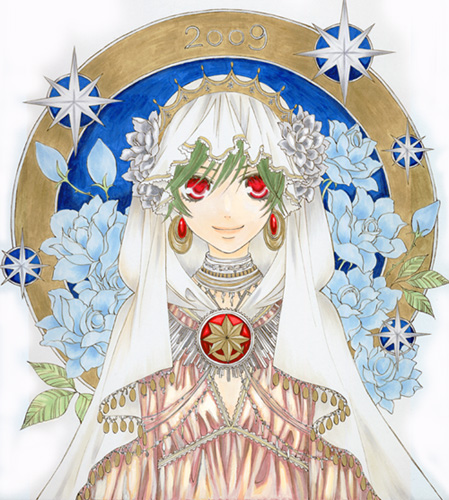 写真や印刷では解りづらいですが、実物はアクセサリー部分なんかが金色やら銀色やらのきらきらした顔彩で塗ってあるのでちょっと豪華な感じです。